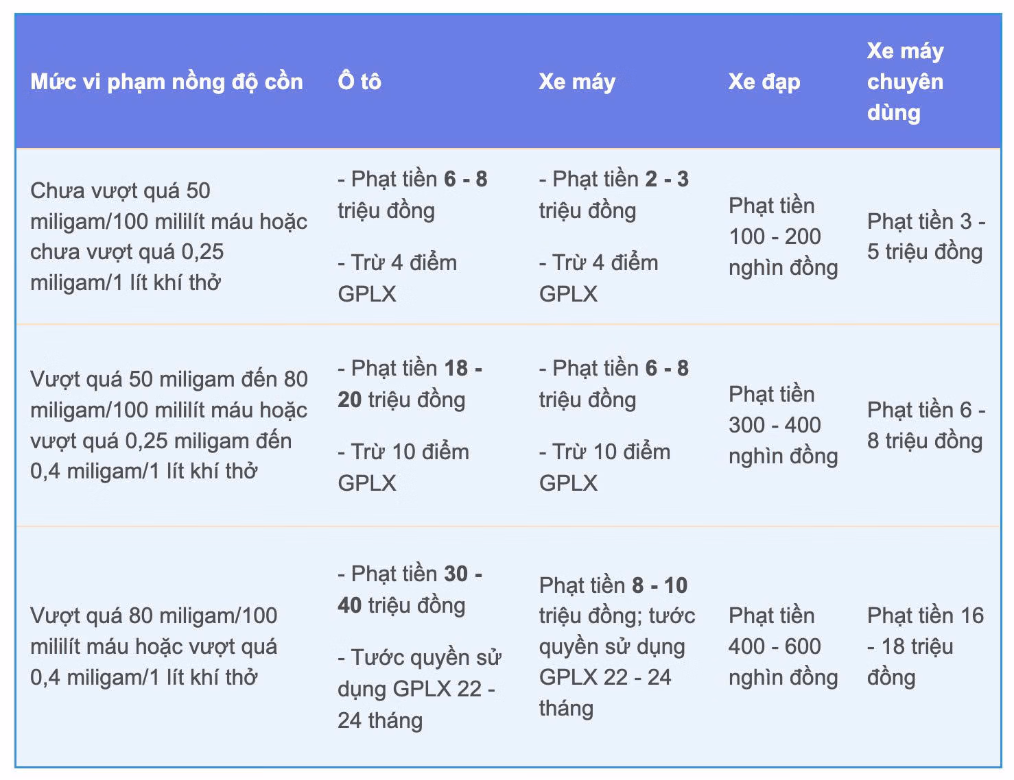 Cũng theo các thông tin lan truyền trên mạng xã hội, mức phạt nồng độ cồn đối với các phương tiện giao thông, từ xe máy, ô tô đến xe đạp, sẽ có sự điều chỉnh đáng kể.