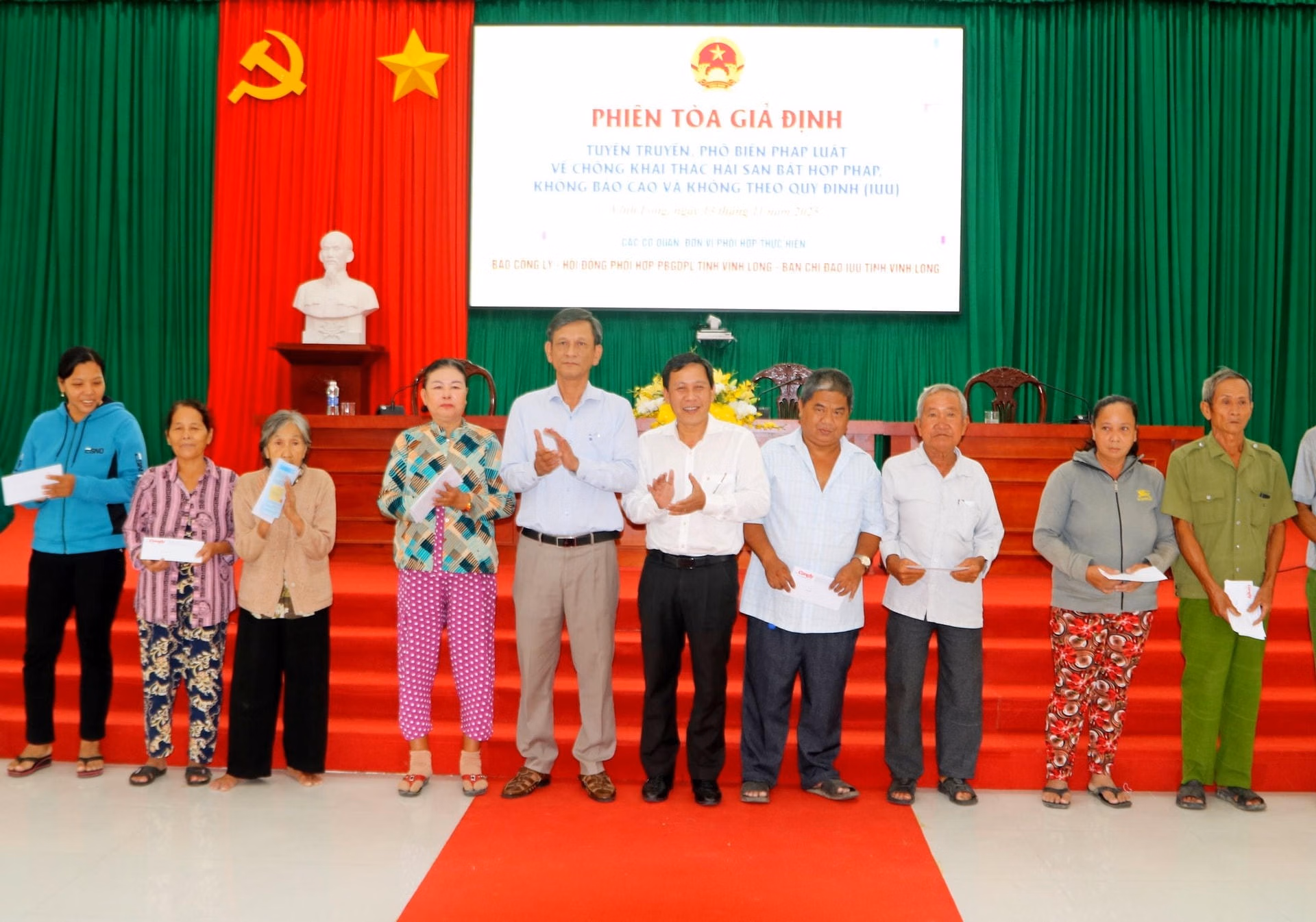 Phiên tòa giả định tuyên truyền pháp luật về chống khai thác IUU tại xã Bình Đại, tỉnh Vĩnh Long đã thu hút sự tham dự của hàng trăm ngư dân.