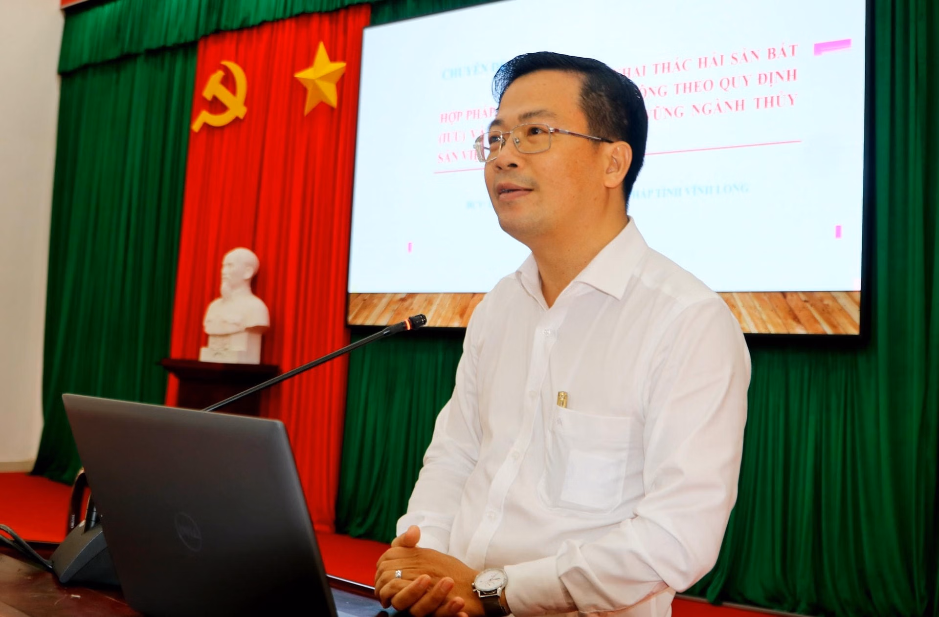 Phát biểu khai mạc chương trình, ông Hồ Thanh Tuấn, Tỉnh ủy viên, Giám đốc Sở Tư pháp tỉnh Vĩnh Long, Phó Chủ tịch Thường trực Hội đồng phối hợp PBGDPL tỉnh thay mặt các đơn vị tổ chức cho biết, từ năm 2017, Ủy ban Châu Âu (EC) đã cảnh báo “thẻ vàng” IUU đối với thủy sản Việt Nam do còn tồn tại nhiều hạn chế trong quản lý hoạt động khai thác.