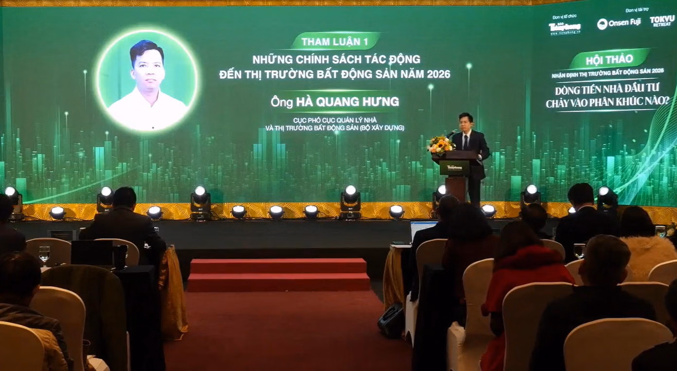 Trong tham luận tại hội thảo "Nhận định thị trường bất động sản năm 2026: Dòng tiền nhà đầu tư chảy vào phân khúc nào, ông Hà Quang Hưng, Phó Cục trưởng Cục Quản lý nhà và thị trường bất động sản (Bộ Xây dựng), nhận định thị trường bất động sản năm 2026 sẽ "sôi động trong sự thận trọng". Ông cũng nhấn mạnh rằng hệ thống pháp luật ban hành năm 2025 và có hiệu lực trong năm 2026 đã tạo ra một khung pháp lý quan trọng để thị trường phát triển ổn định và bền vững.