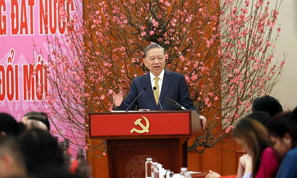 Thông tin về tình hình đất nước với Đoàn kiều bào tiêu biểu, Tổng Bí thư khẳng định, năm 2025 được xác định là dấu mốc quan trọng, đánh dấu sự chuyển biến mạnh mẽ về tư duy phát triển, cải cách thể chế, đổi mới bộ máy và tái cấu trúc không gian phát triển quốc gia, tạo nền tảng vững chắc để bước vào giai đoạn phát triển mới.