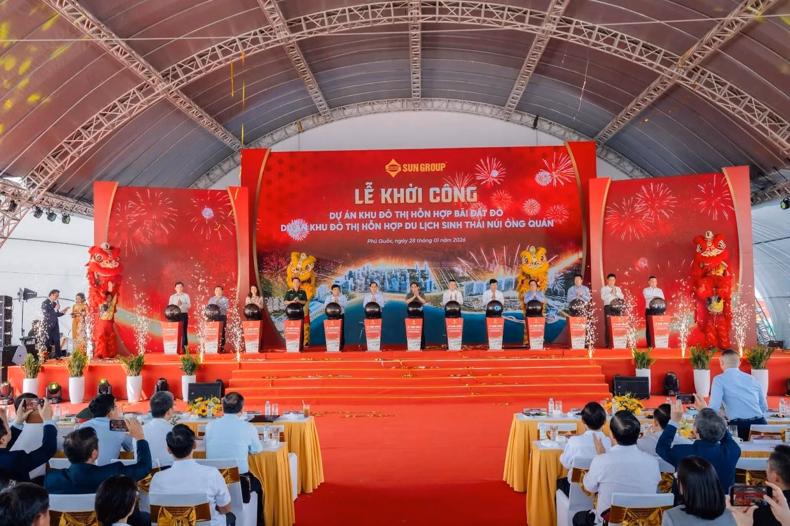 Sun Group vừa khởi công hai dự án với tổng vốn gần 70.000 tỷ đồng tại Phú Quốc nhằm phát triển hạ tầng lưu trú cao cấp phục vụ Tuần lễ Cấp cao APEC 2027, đồng thời tạo nền tảng cho phát triển du lịch và dịch vụ dài hạn của đảo Ngọc.