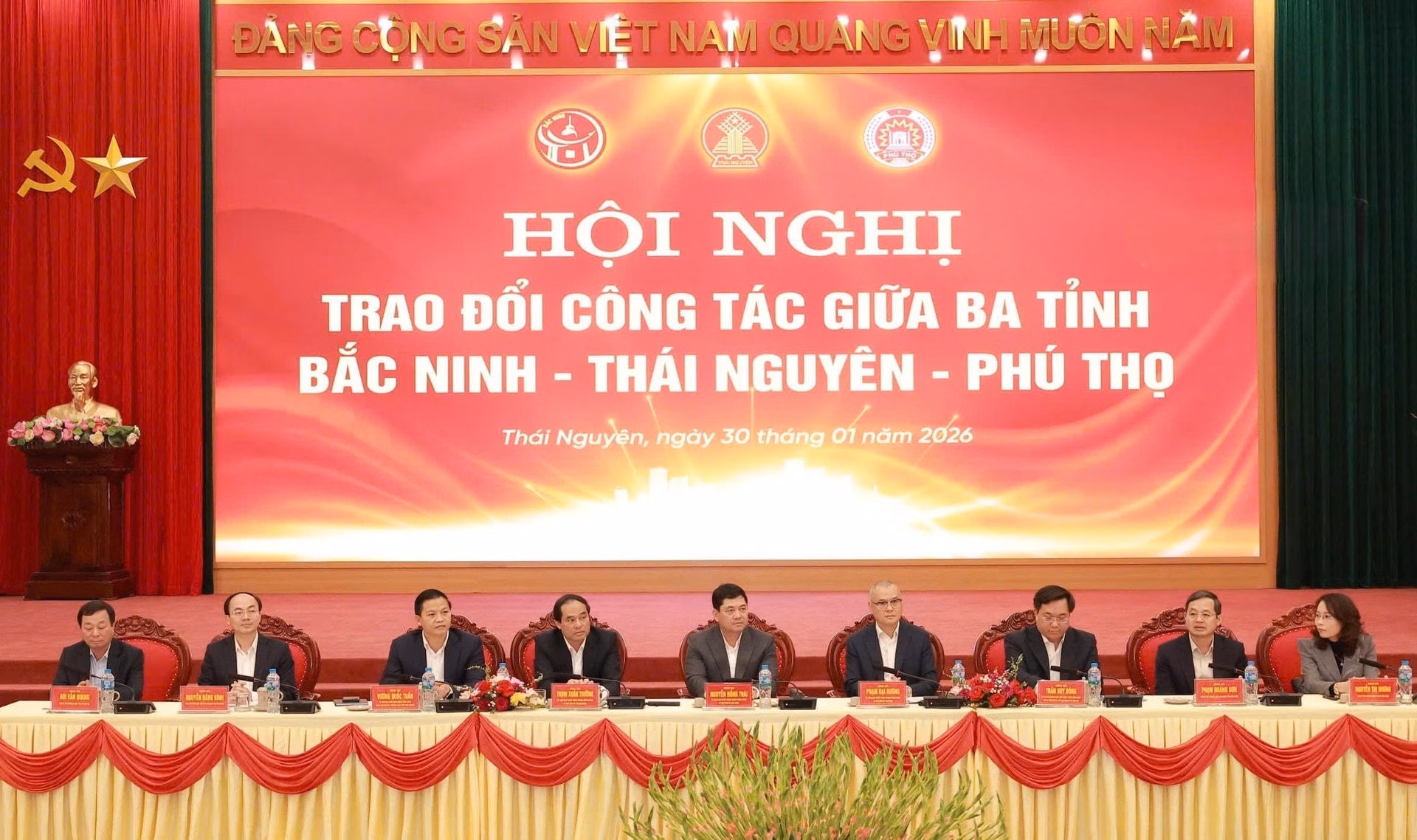 Ngày 30/1, Ban Thường vụ Tỉnh ủy 3 tỉnh Thái Nguyên, Bắc Ninh và Phú Thọ tổ chức Hội nghị trao đổi về phát triển kinh tế – xã hội, bảo đảm quốc phòng, an ninh và hợp tác liên vùng. Hội nghị đánh dấu bước tiến quan trọng trong liên kết phát triển, mở ra kh