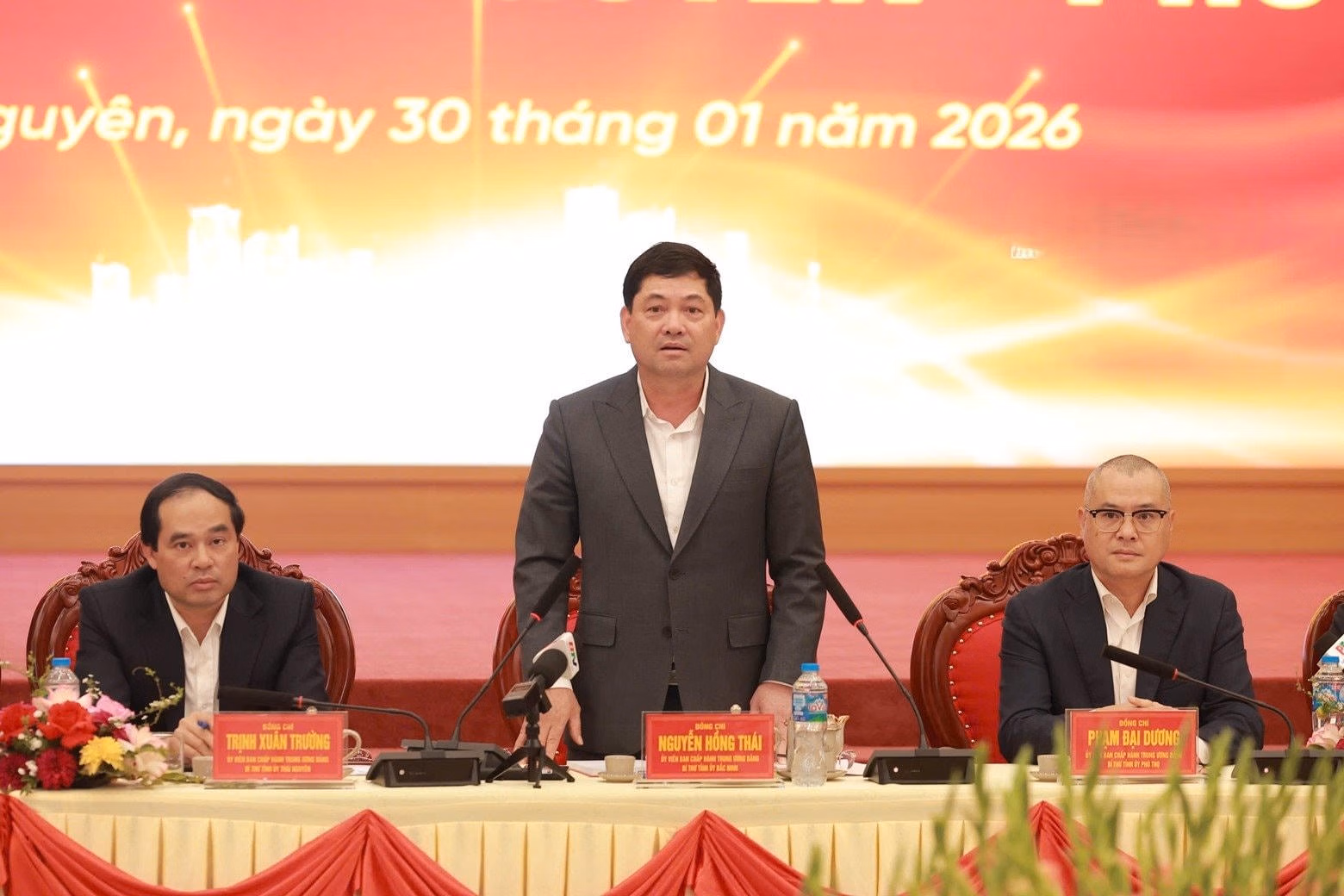 Hội nghị do các đồng chí: Trịnh Xuân Trường, Ủy viên Ban Chấp hành Trung ương Đảng, Bí thư Tỉnh ủy Thái Nguyên; Nguyễn Hồng Thái, Ủy viên Ban Chấp hành Trung ương Đảng, Bí thư Tỉnh ủy Bắc Ninh; Phạm Đại Dương, Ủy viên Ban Chấp hành Trung ương Đảng, Bí thư Tỉnh ủy Phú Thọ và Thường trực Tỉnh ủy 3 tỉnh đồng chủ trì.